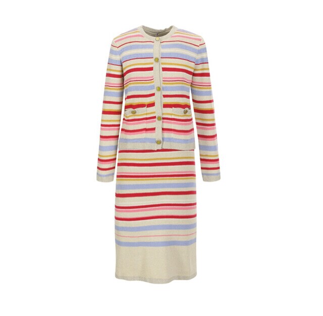 스트라이프 패턴 니트 투피스 세트 S221C933