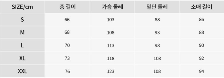 사이즈 : S(90),M(95),L(100),XL(105),XXL(110)
