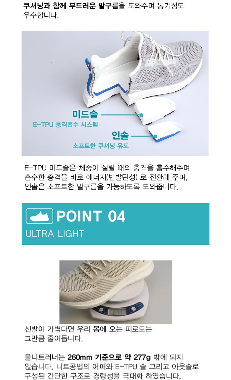 1. 제품 소재 (운동화인 경우에는 겉감, 안감을 구분하여 표시) 상세페이지참조