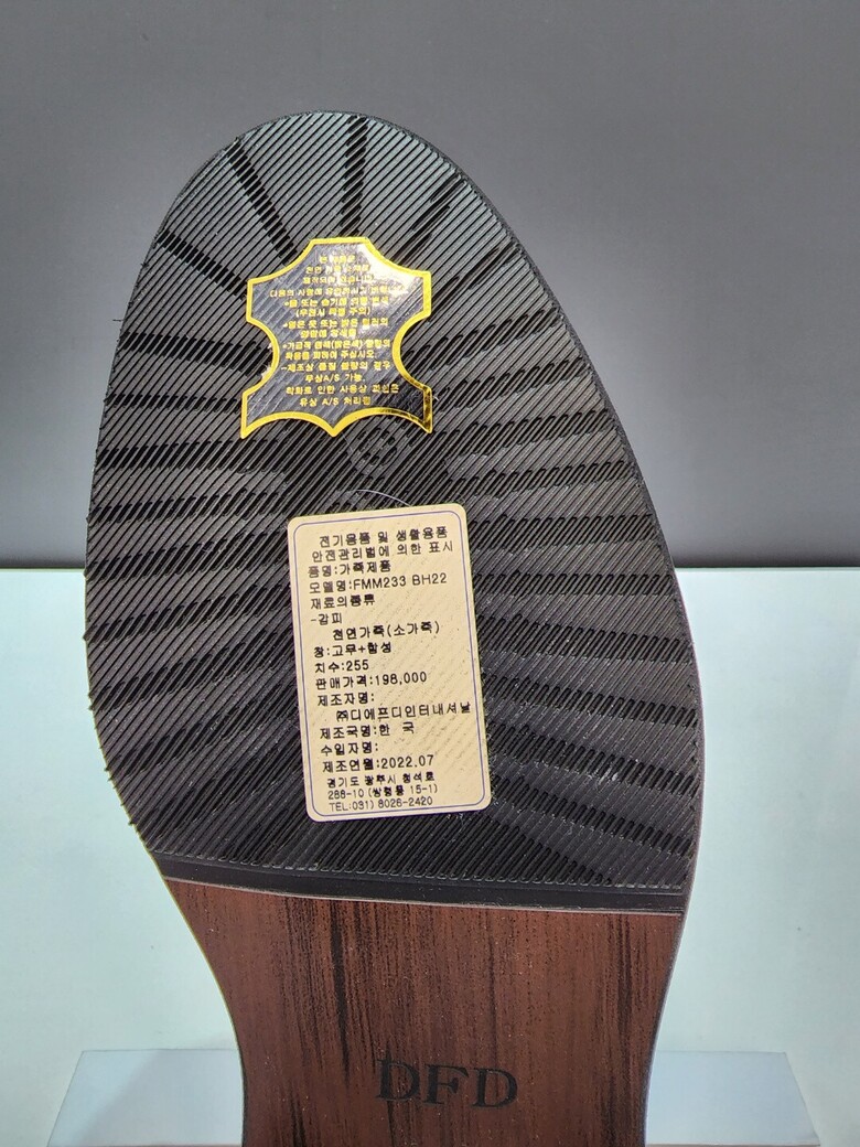 | 1. 제품 소재 (운동화인 경우에는 겉감, 안감을 구분하여 표시) | 소가죽 |