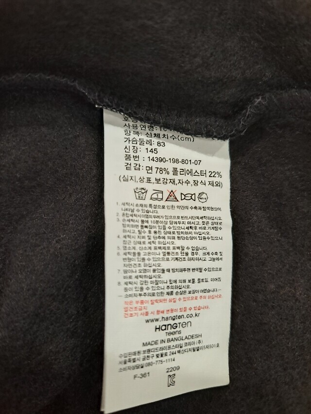 • 처음 배송된 상품상태와 다를 경우(세탁/착용 후 외출하신 경우) 반품이 불가합니다.
