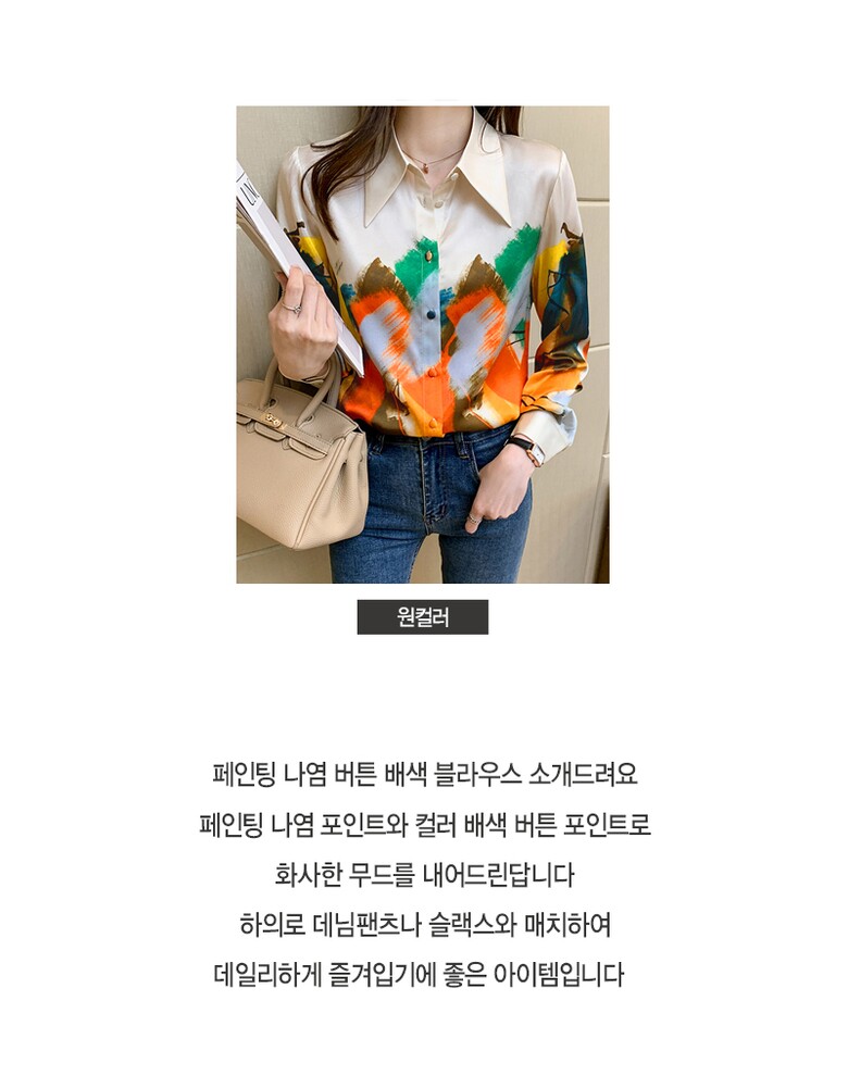 55부터 77까지 노에미 컬러 페인팅 나염 블라우스/셔츠