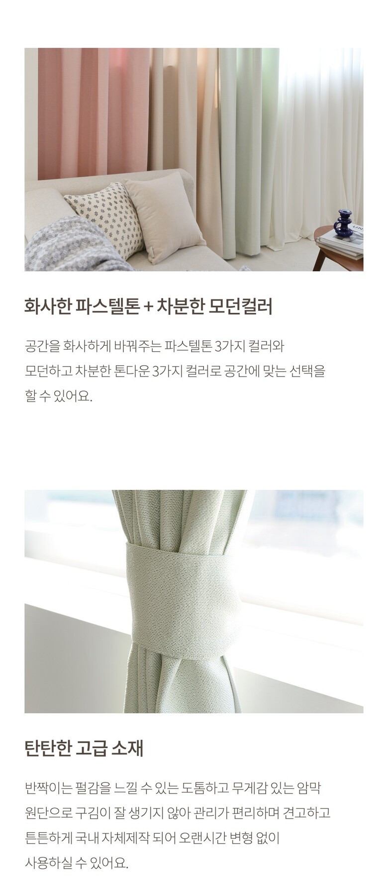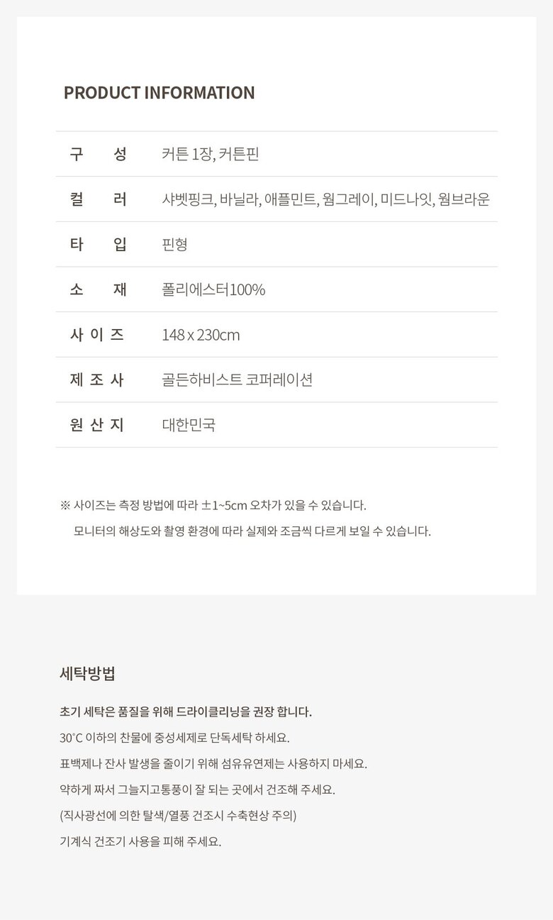 | 4. 제품구성 | 커튼1장, 커튼끈1장, 커튼핀 |