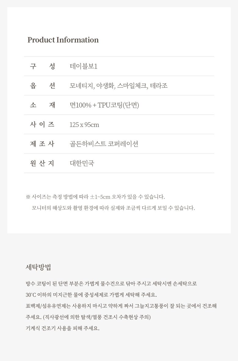 | 4. 제품구성 | 테이블보 1장 |
