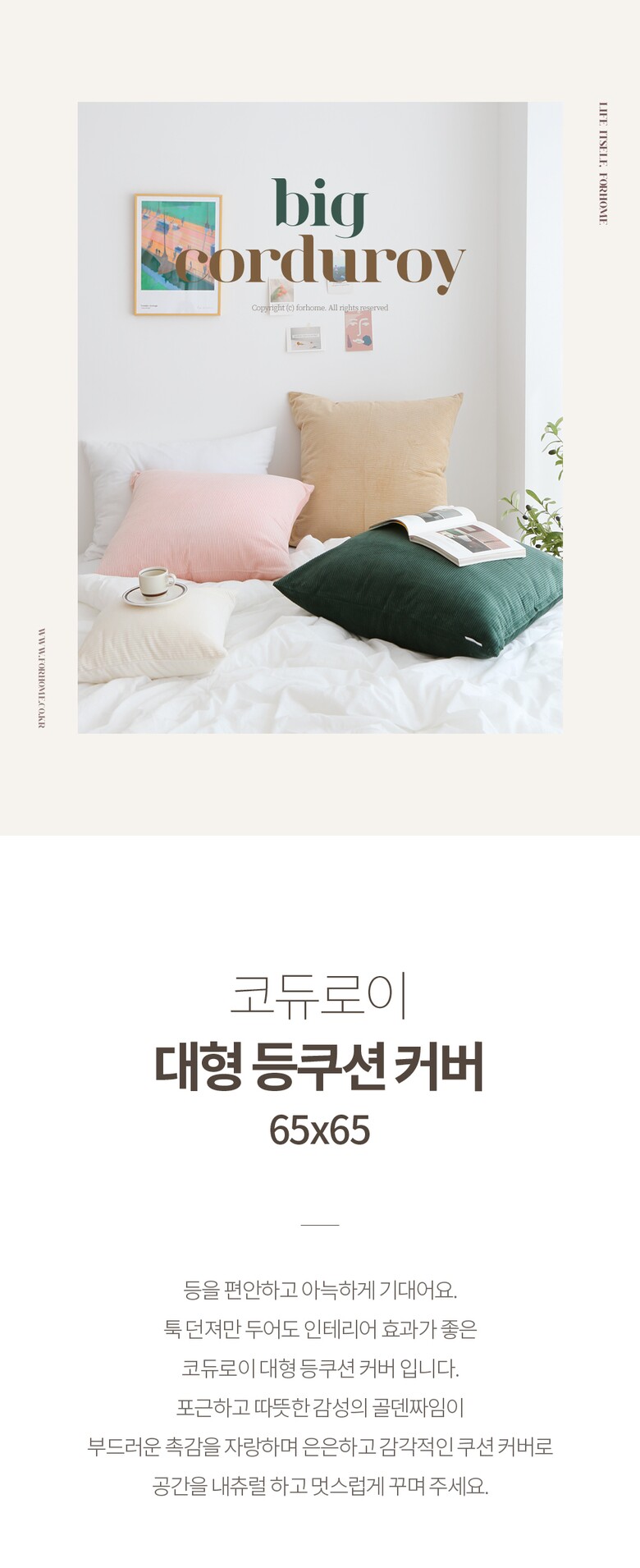 코듀로이 대형 등쿠션커버 65x65 6color