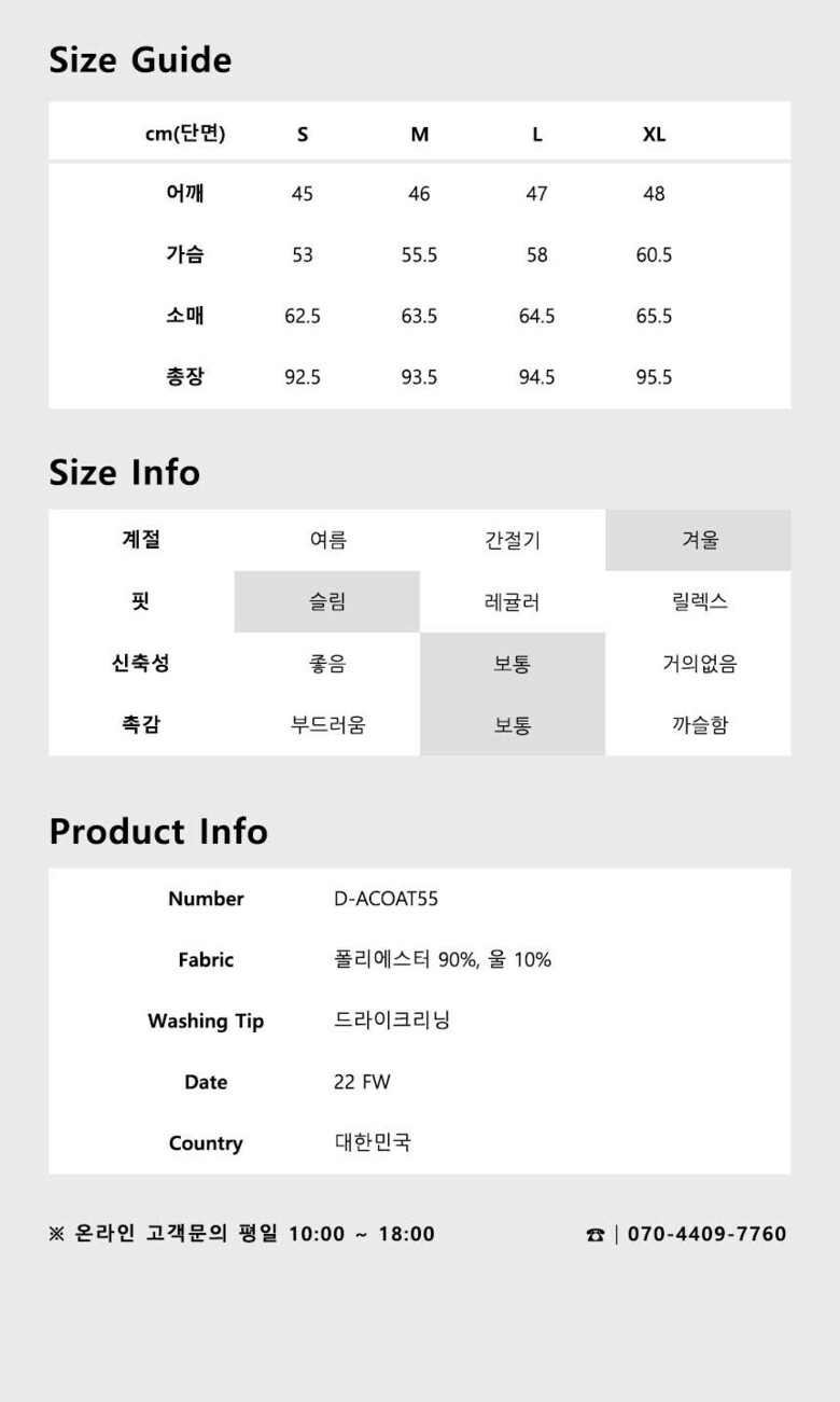 슬림핏코트로 슬림하게 입으시면 정사이즈 추천드립니다