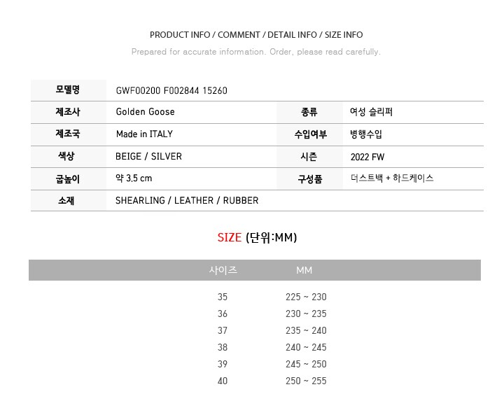 | 1. 제품 소재 (운동화인 경우에는 겉감, 안감을 구분하여 표시) | 상세페이지 참조 |