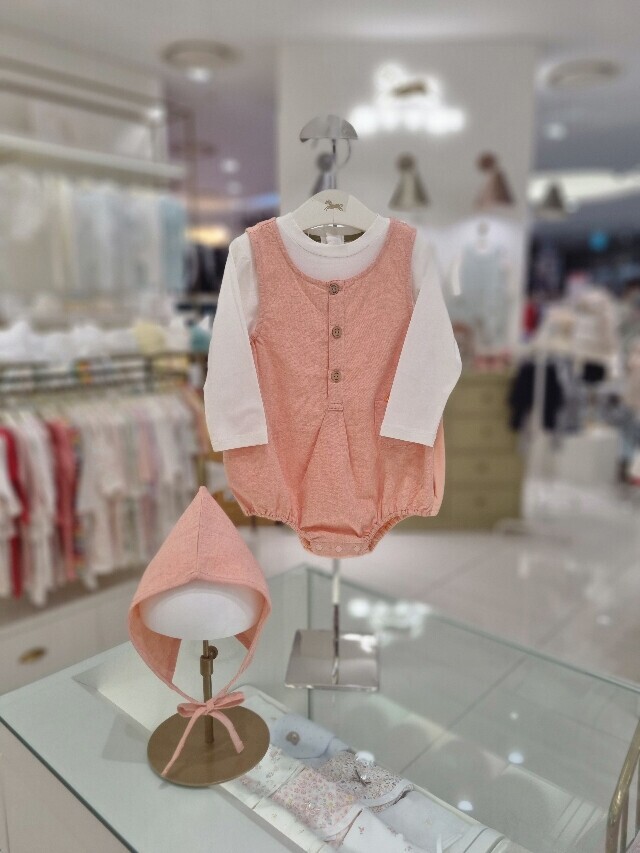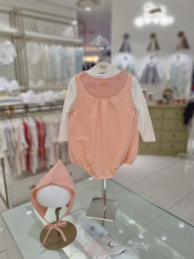 예쁜 보넷과 셋트로 되어있는 여아 슈트입니다