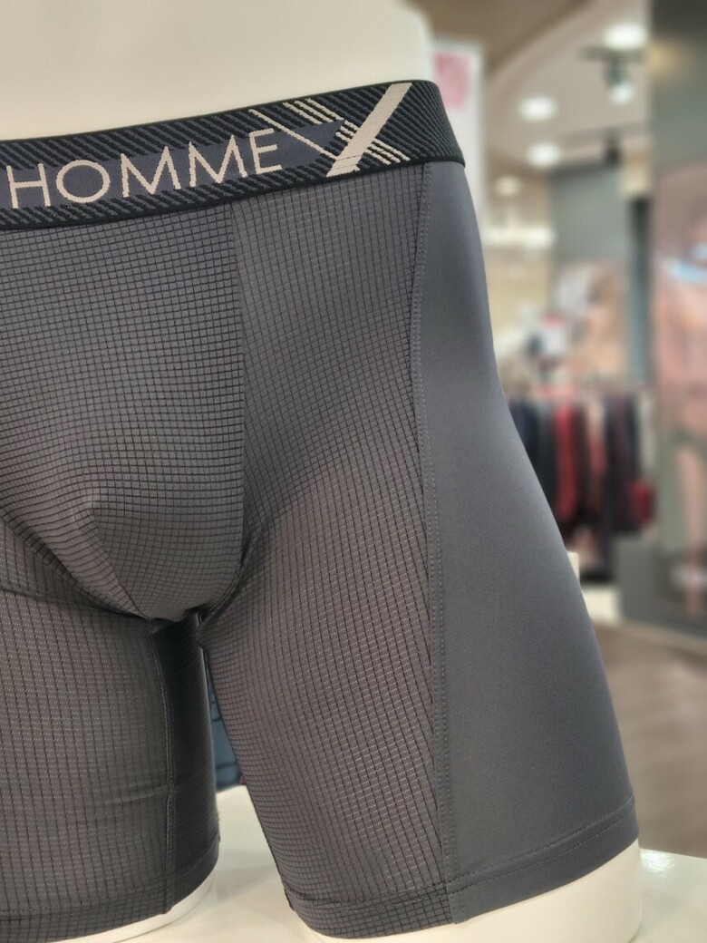 21FW, 체크 패턴의 챠콜 5부 남성 드로즈입니다.