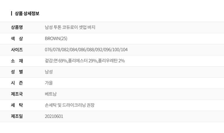 [INDIAN] 남성 투톤 코듀로이 셋업 바지_MIUDLXF9161