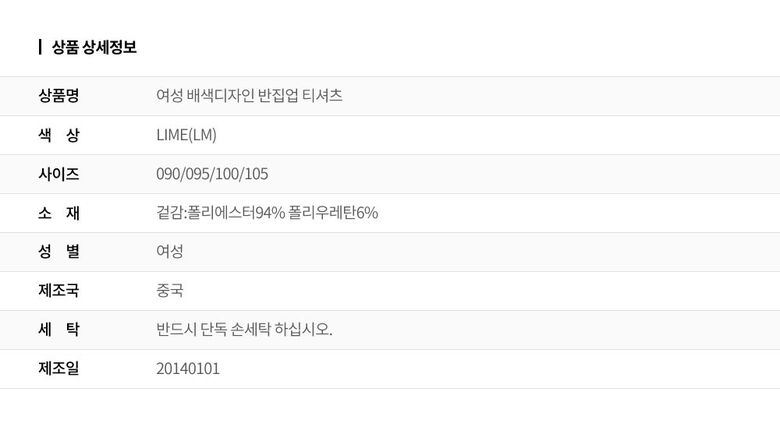 | 1. 제품 소재 (섬유의 조성 또는 혼용률을 백분율로 표시, 기능성인 경우 성적서 또는 허가서) | 겉감:폴리에스터94% 폴리우레탄6% |