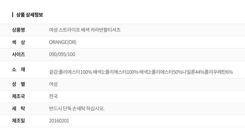 | 1. 제품 소재 (섬유의 조성 또는 혼용률을 백분율로 표시, 기능성인 경우 성적서 또는 허가서) | 겉감:폴리에스터100% 배색1:폴리에스터100% 배색2:폴리에스터50%나일론44%폴리우레탄6% |