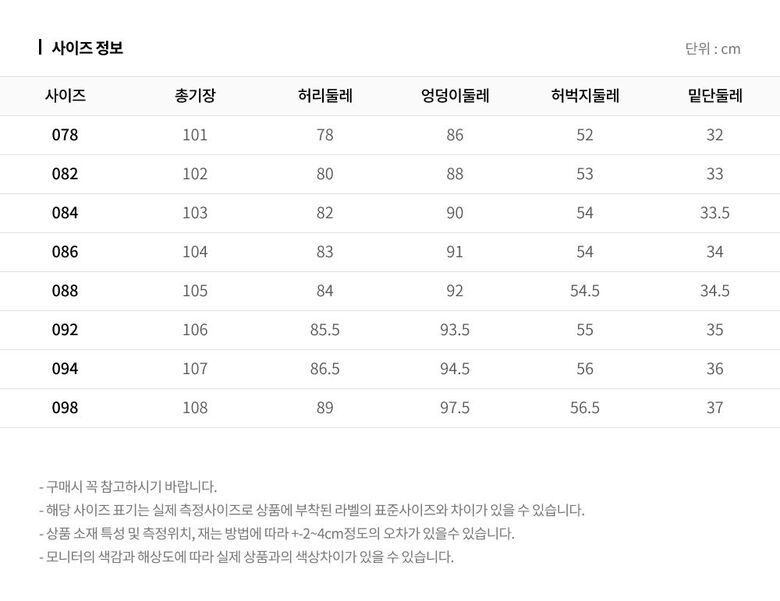 | 3. 치수 | 사이즈:078/086/090/094 |