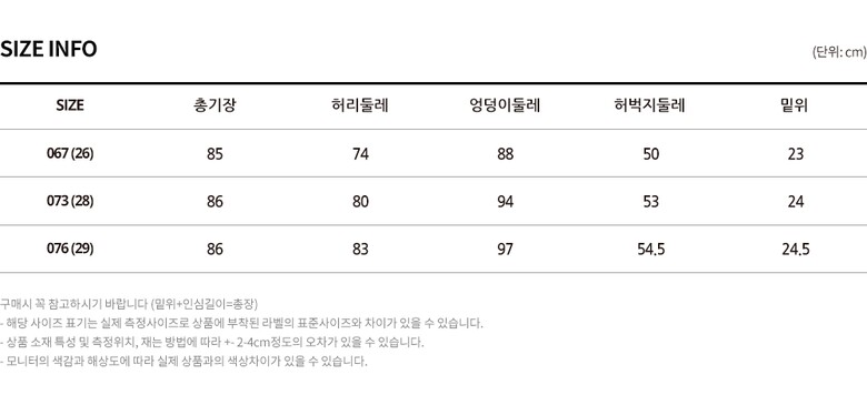| 3. 치수 | 사이즈:067,073,076 |