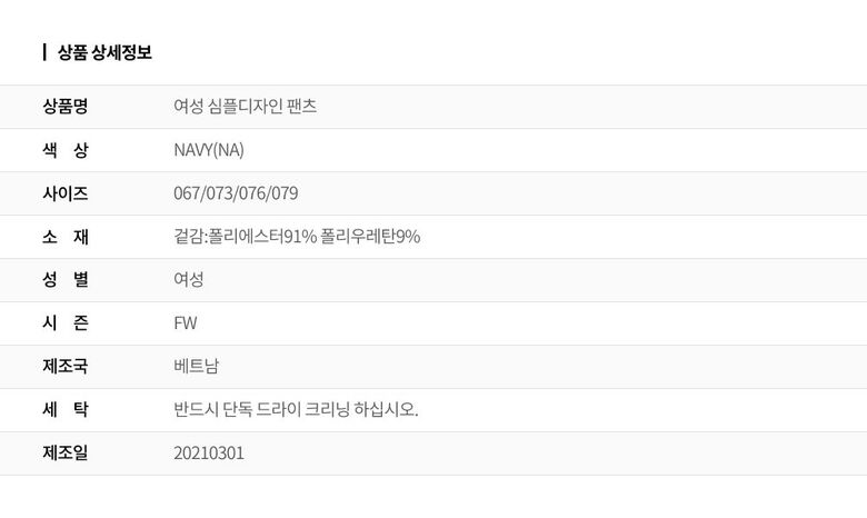 | 2. 색상 | 색상:NAVY(NA) |