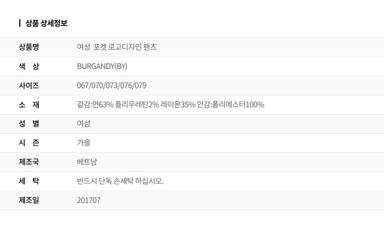 | 6. 세탁방법 및 취급시 주의사항 | 이 상품은 단독손세탁 하십시오 |