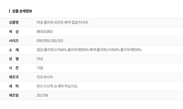 | 6. 세탁방법 및 취급시 주의사항 | 이 상품은 단독손세탁 하십시오 |