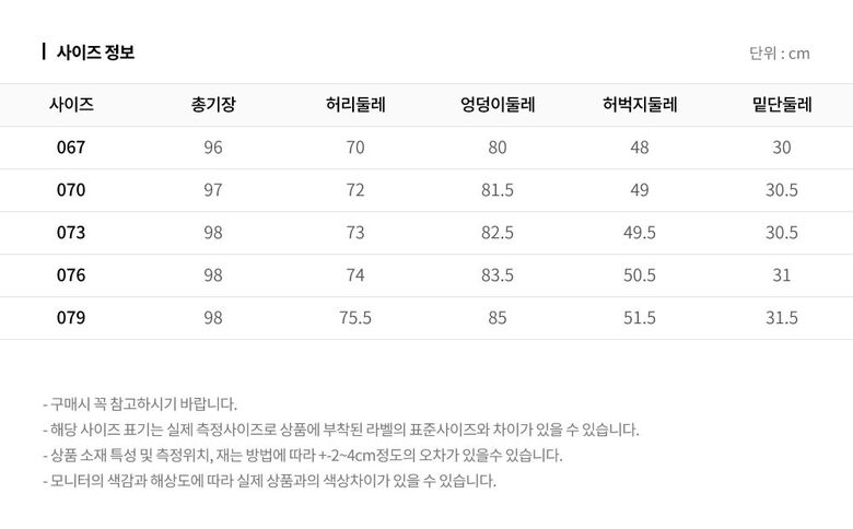 | 3. 치수 | 사이즈:067/070/073/076/079 |