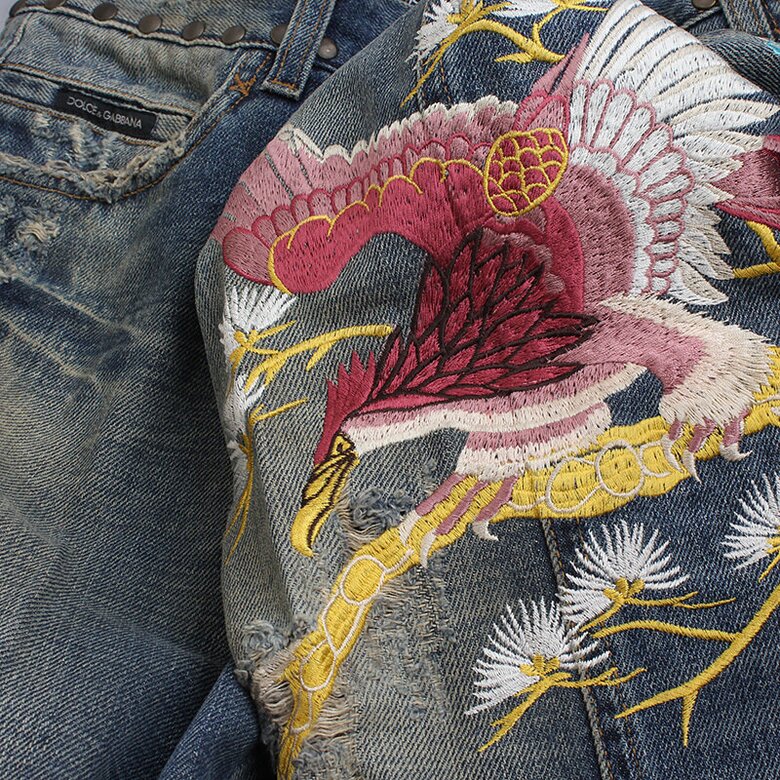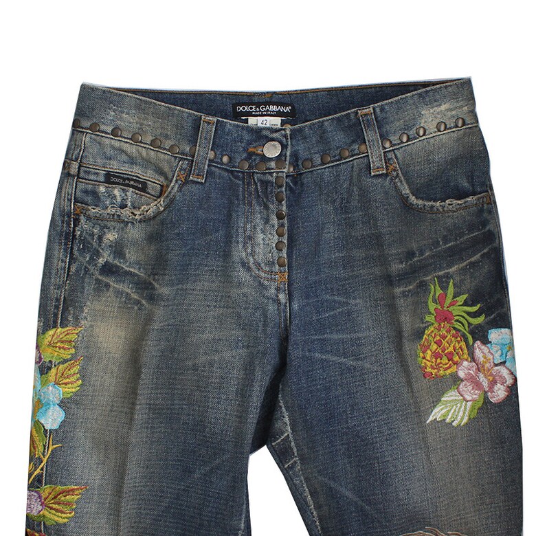 [중고명품] 돌체 앤 가바나 하와이안 자수 데님 팬츠 55