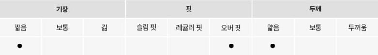 · 핏감 : □ 루즈 ■ 표준 □ 슬림
