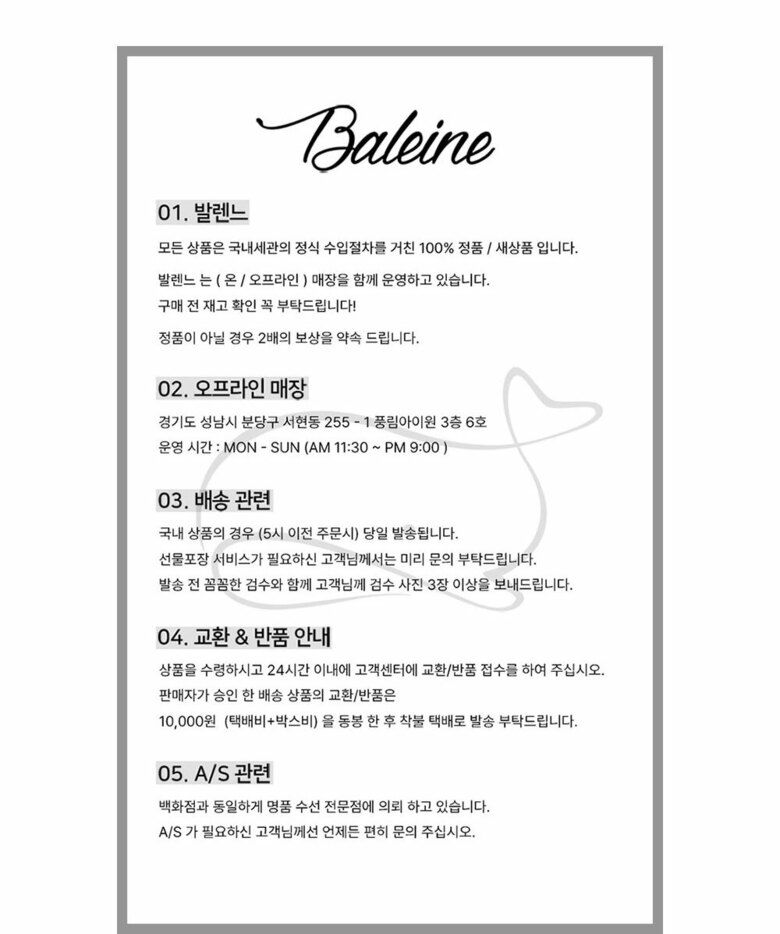 BALEINE '발렌느'의 모든 상품은 정식 통관을 거친 100% 정품 /새상품 입니다.