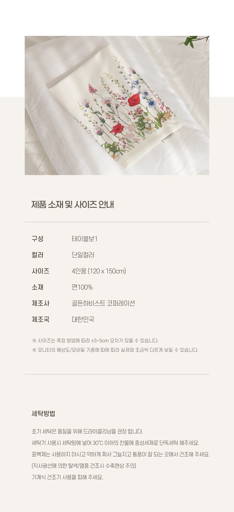 | 7. 세탁방법 및 취급시 주의사항 | 상세페이지 참조 |