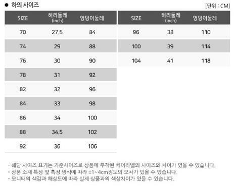 TR소재와 스판 소재 혼방으로 구김없이 신축성 좋게 착용가능합니다.