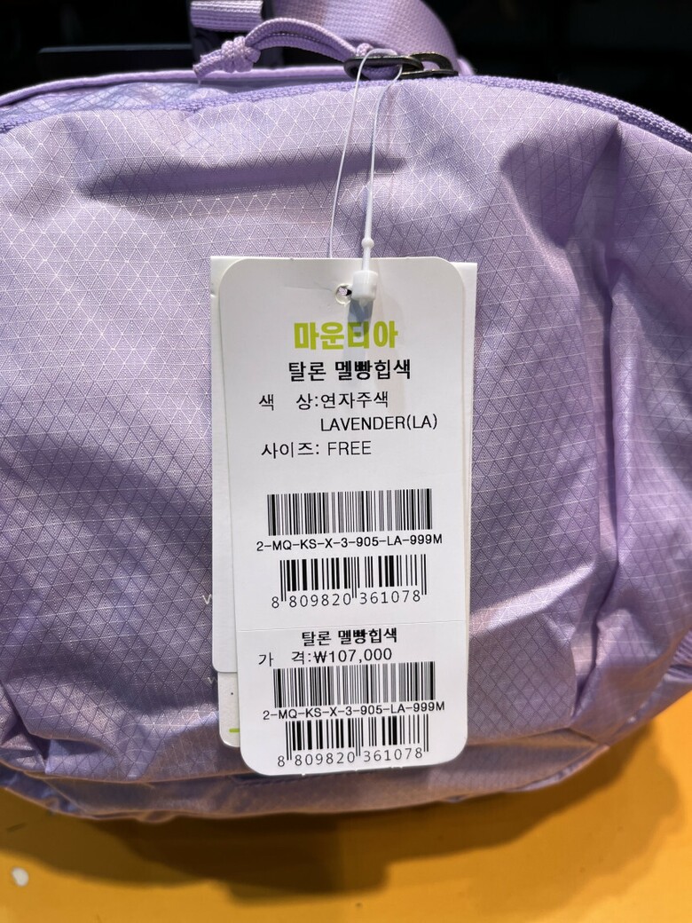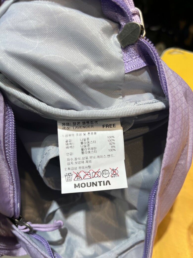 | 2. 소재 | 겉감 - 나일론 100% 배색 1 - 폴리에스터 100% 배색 2 - 나일론 92%, |