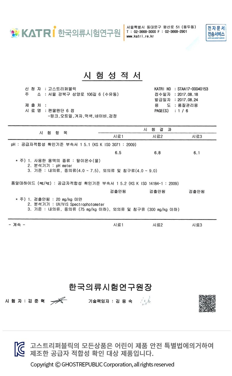 | 1. 제품 소재 (섬유의 조성 또는 혼용률을 백분율로 표시, 기능성인 경우 성적서 또는 허가서) | 상세페이지 참조 |