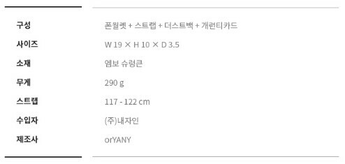 | 8. 사이즈정보 | 상세페이지 참조 |