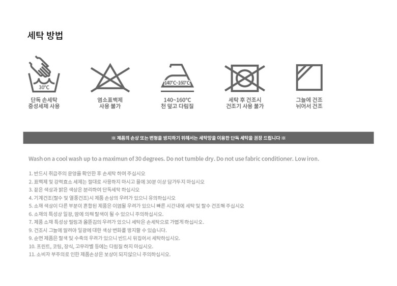 | 6. 세탁방법 및 취급시 주의사항 | 반드시 단독 손세탁 하십시오. |
