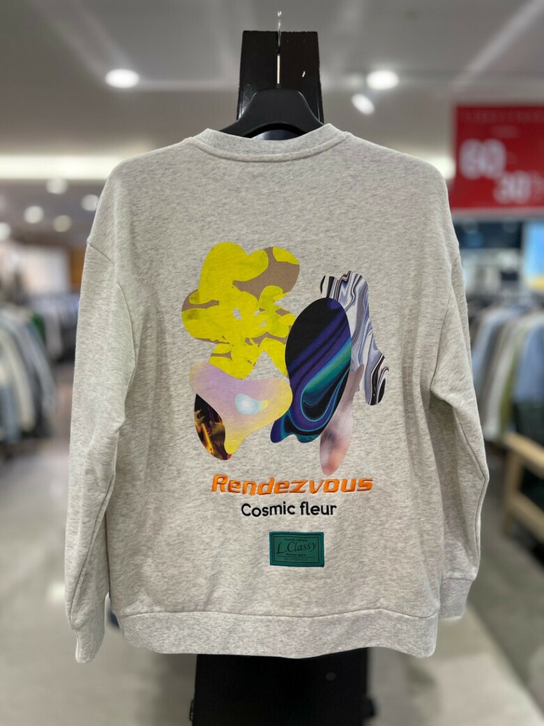 리버클래시 오트밀 등판 오로라 아트윅 오버핏 맨투맨 티셔츠 LJS41107