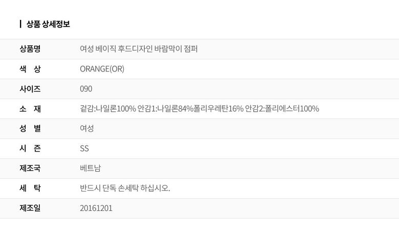 | 1. 제품 소재 (섬유의 조성 또는 혼용률을 백분율로 표시, 기능성인 경우 성적서 또는 허가서) | 겉감:나일론100% 안감1:나일론84%폴리우레탄16% 안감2:폴리에스터100% |