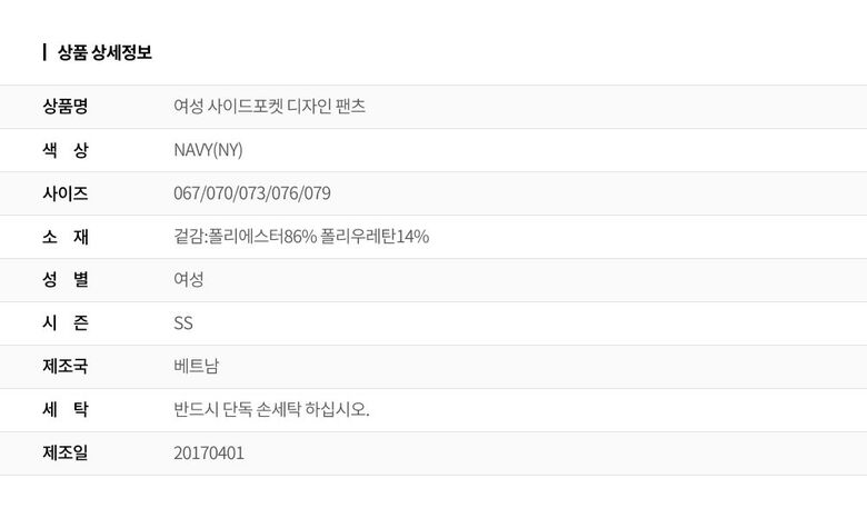 | 1. 제품 소재 (섬유의 조성 또는 혼용률을 백분율로 표시, 기능성인 경우 성적서 또는 허가서) | 겉감:폴리에스터86% 폴리우레탄14% |