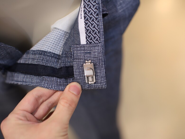 인디고 색상으로 미니체크패턴이 있는 봄여름에 다양하게 연출하기 좋은 컬러입니다.