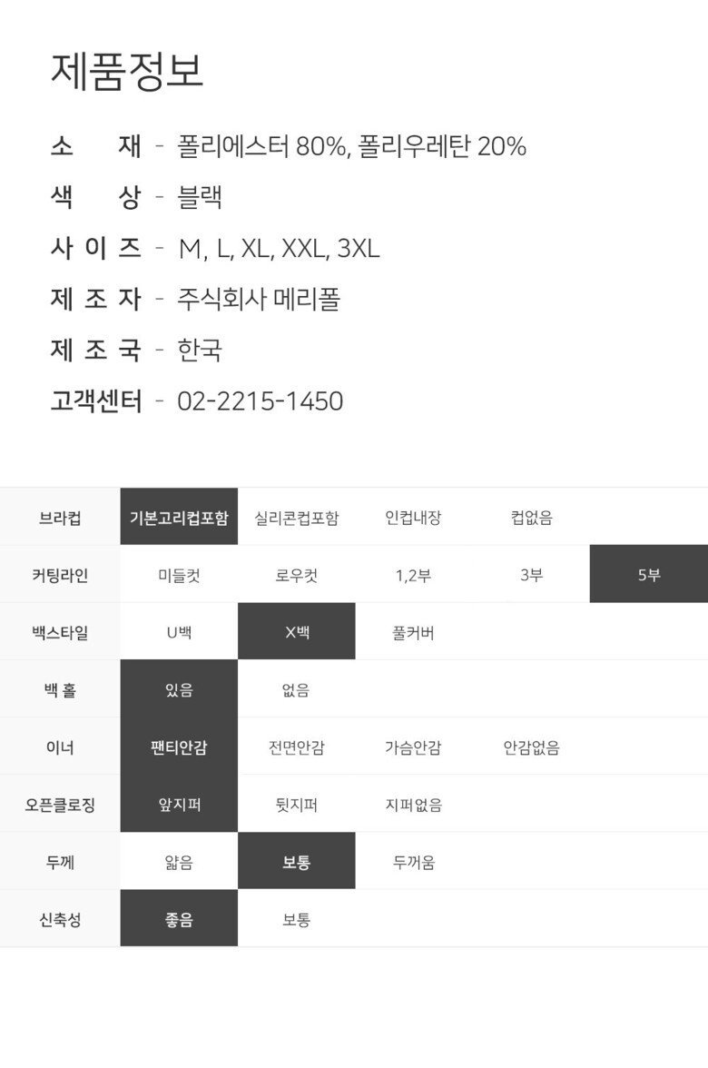 | 6. 세탁방법 및 취급시 주의사항 | 상세페이지 참조 |