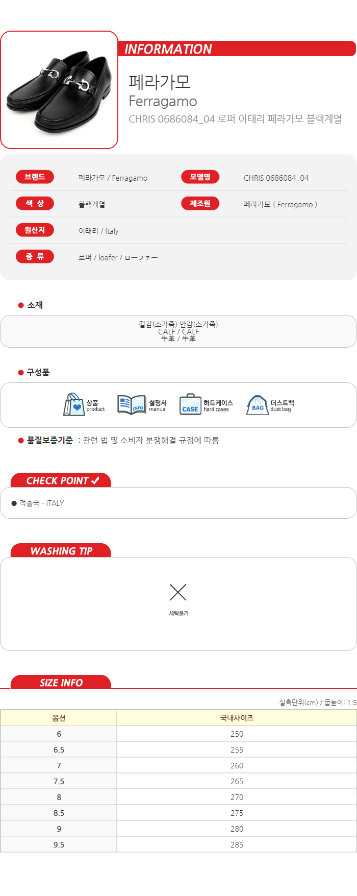 | 1. 제품 소재 (운동화인 경우에는 겉감, 안감을 구분하여 표시) | 겉감(소가죽),안감(소가죽) |
