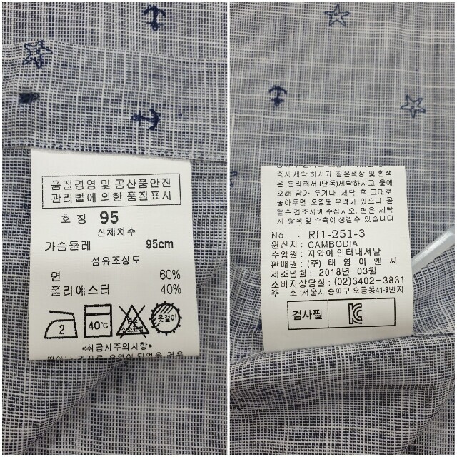 | 1. 제품 소재 (섬유의 조성 또는 혼용률을 백분율로 표시, 기능성인 경우 성적서 또는 허가서) | 상품상세참조 |