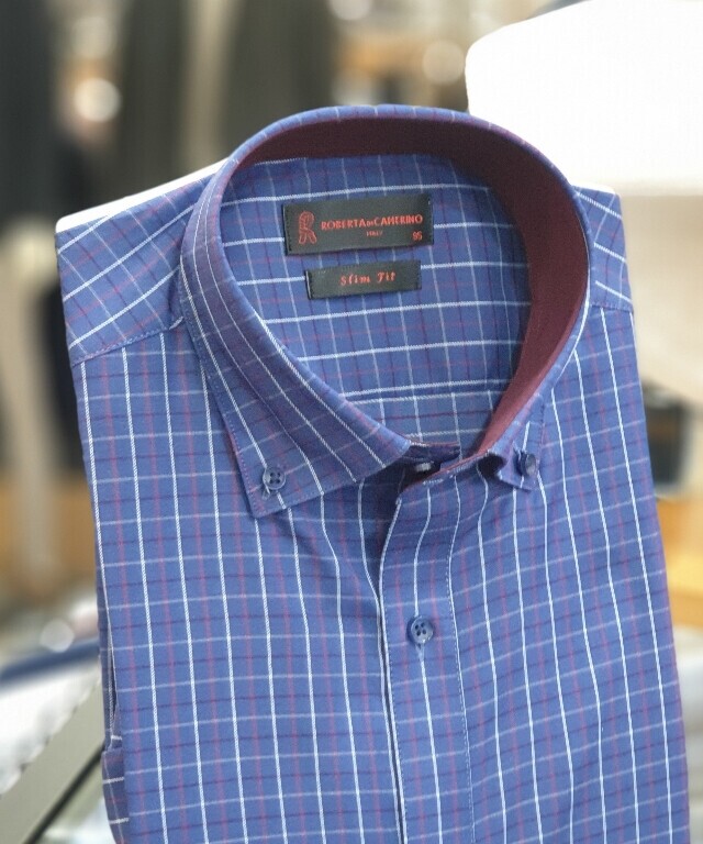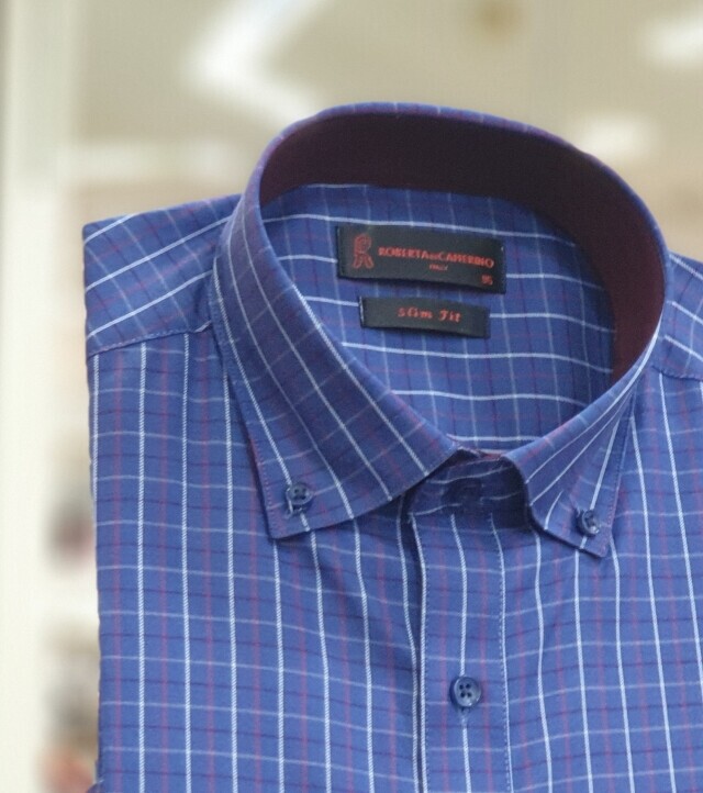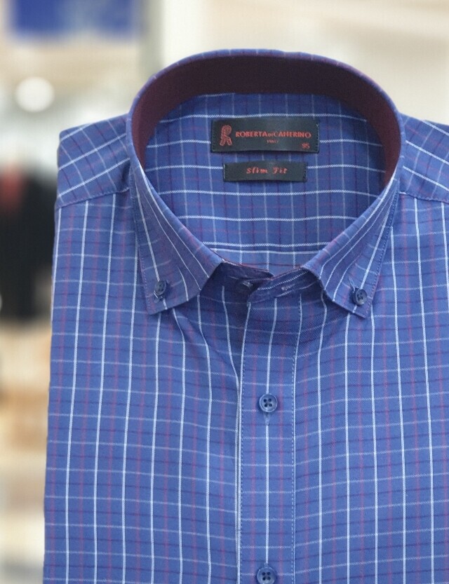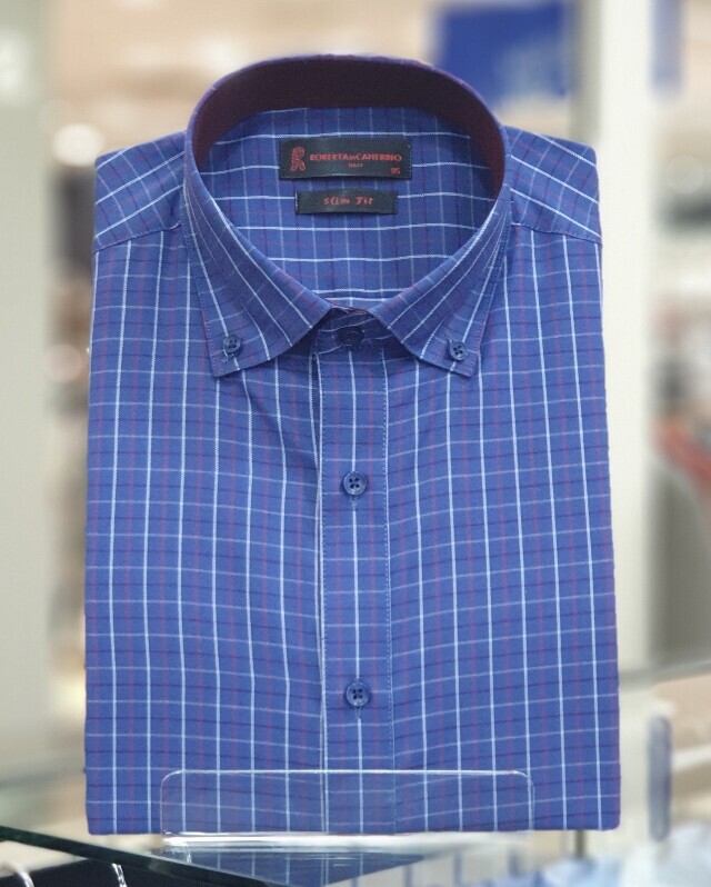 면혼방 카라버튼 체크 슬림핏셔츠 RK1-253-2