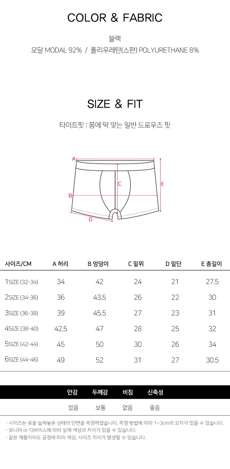 | 1. 제품 소재 (섬유의 조성 또는 혼용률을 백분율로 표시, 기능성인 경우 성적서 또는 허가서) | 모달92%.스판8% |
