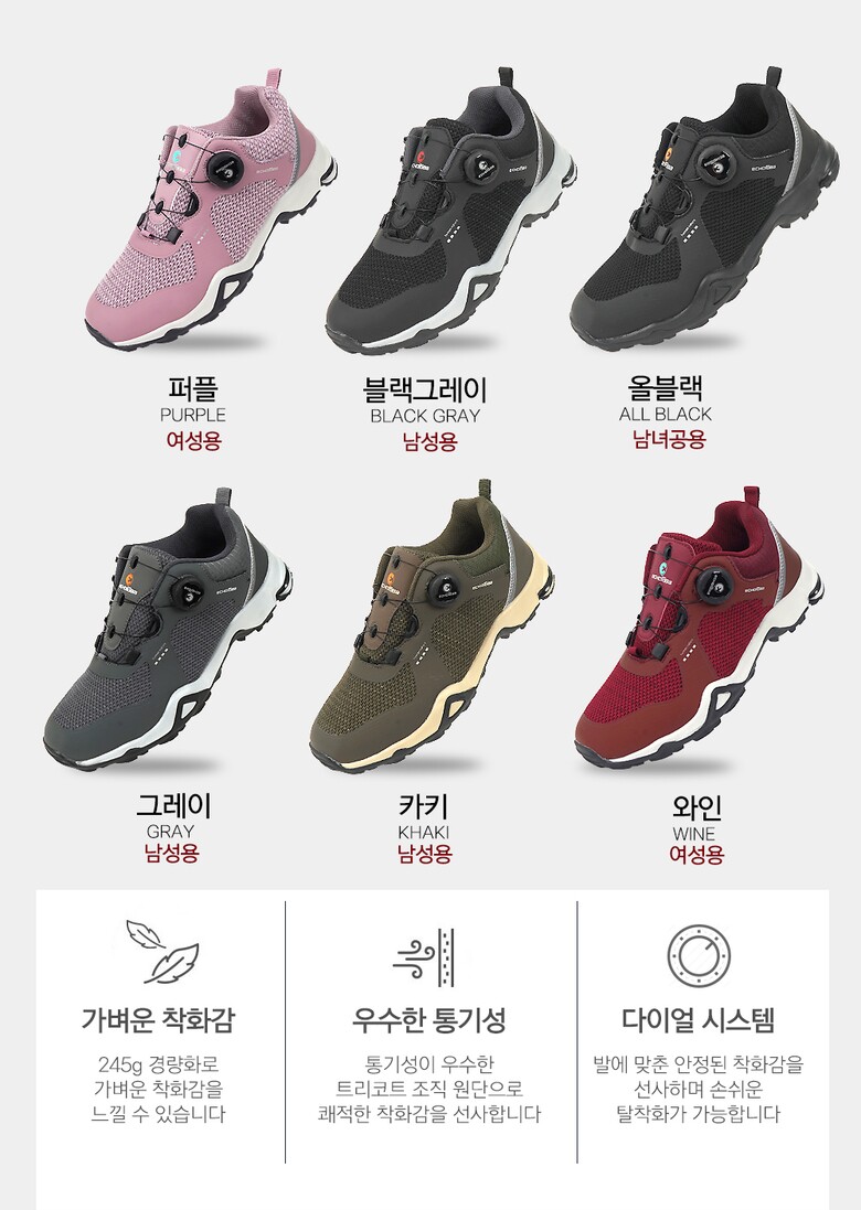 [에코로바] 남녀공용 편리한 다이얼 트레킹 등산 조깅화-ER0132