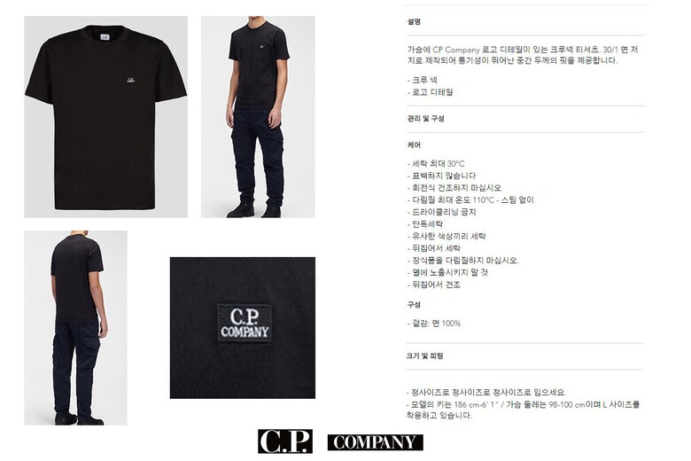 ■ 상품특징 - (구입당일 출발 국내배송) 씨피컴퍼니 로고패치 티셔츠 블랙 CP COMPANY?14CMTS068A 005100W 999