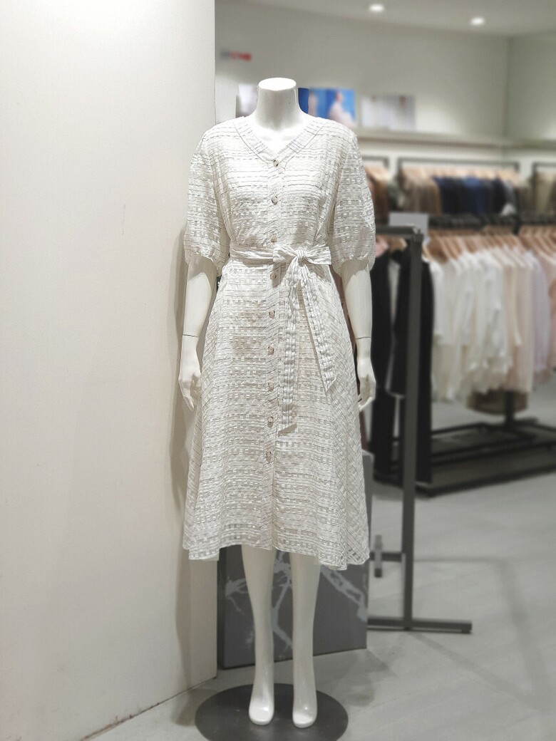 우아한 무드가 느껴지는 미디 기장 원피스입니다.