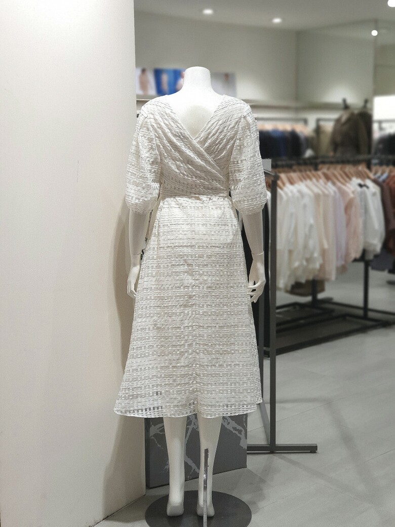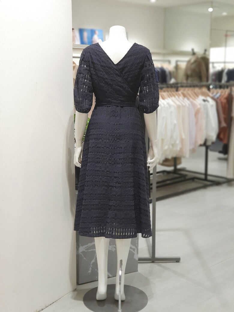 퍼프소매 디테일과 랩 디자인의 허리 끈으로 포인트를 주고