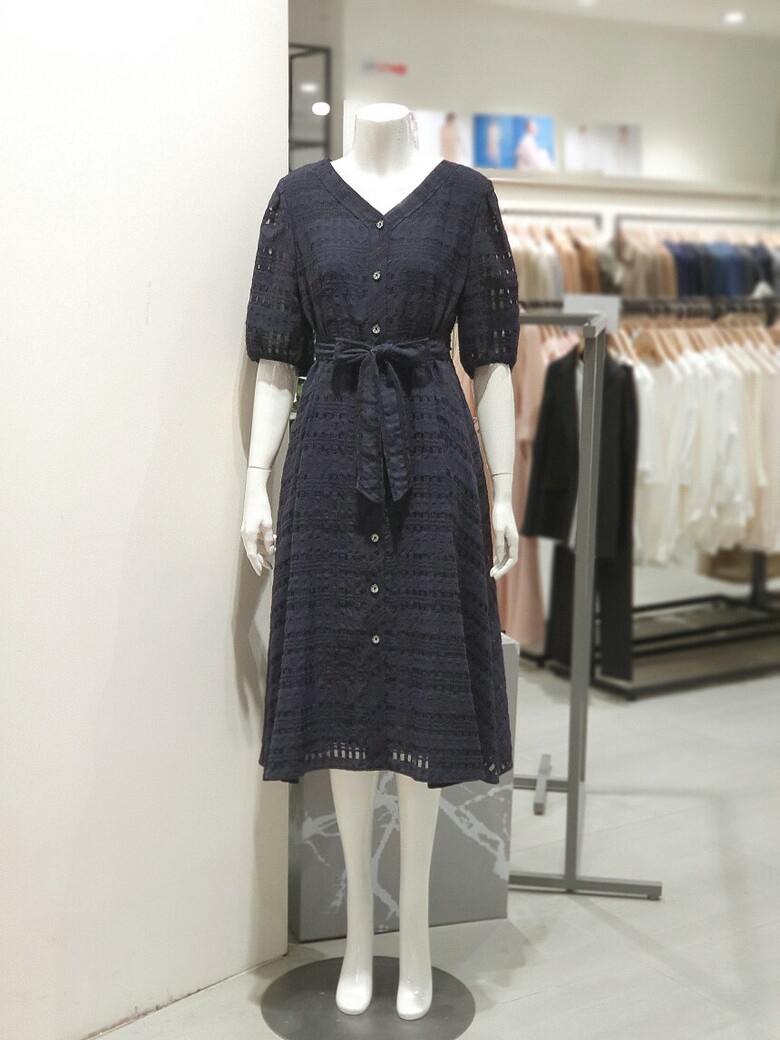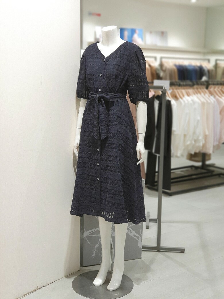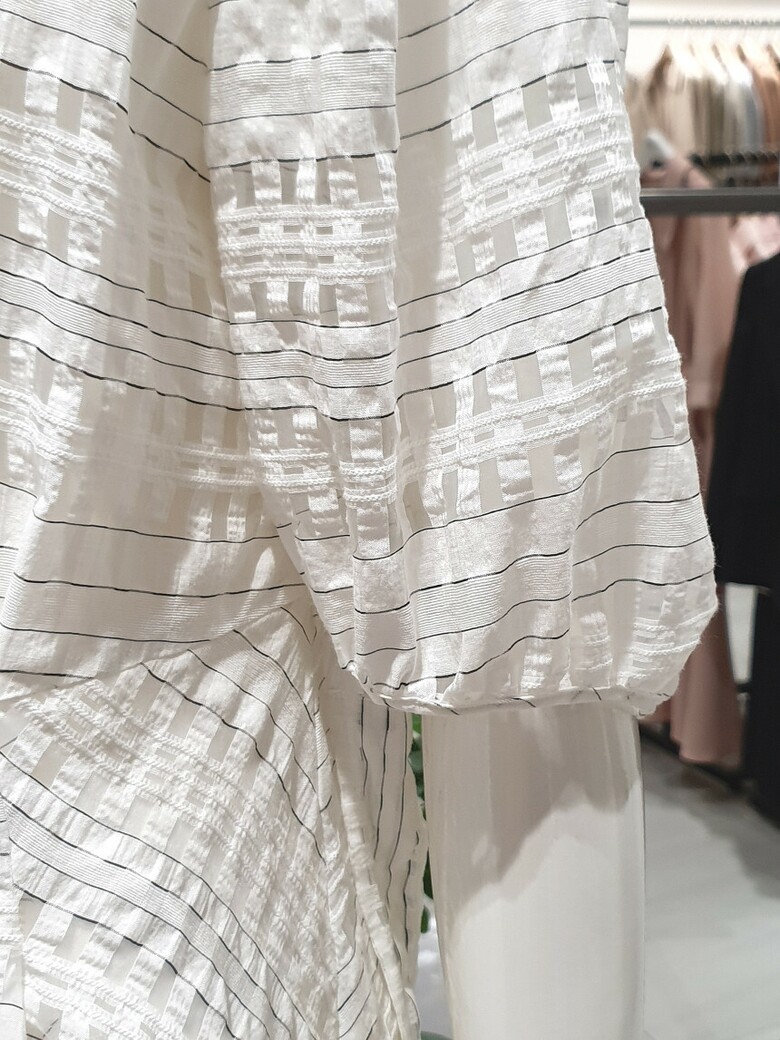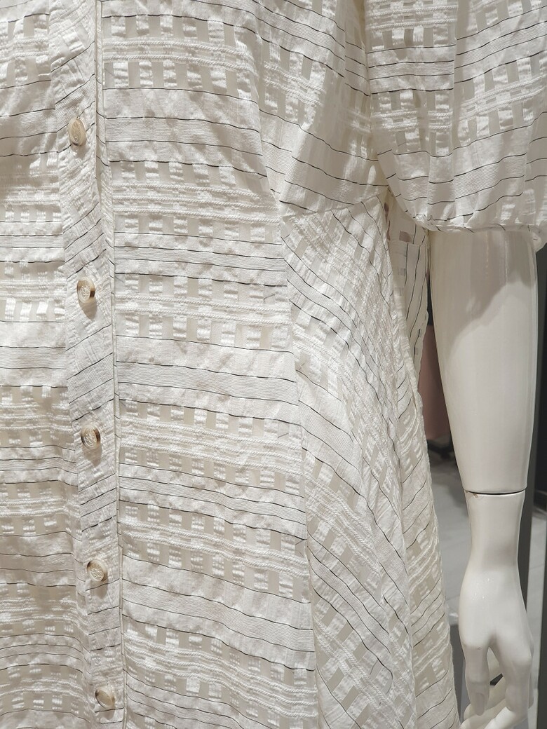 펀칭 스트라이프 퍼프소매 원피스 KWOPNG0200