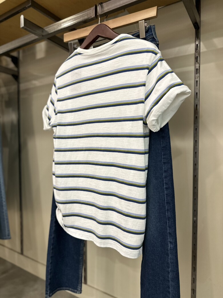 화이트 컬러에 네이비|*| 그린|*| 스카이블루 스트라이프 조화로