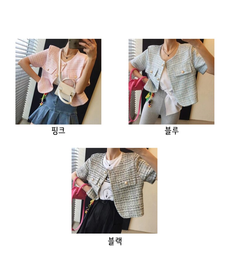 헤이니 트위드 반팔 자켓 3color