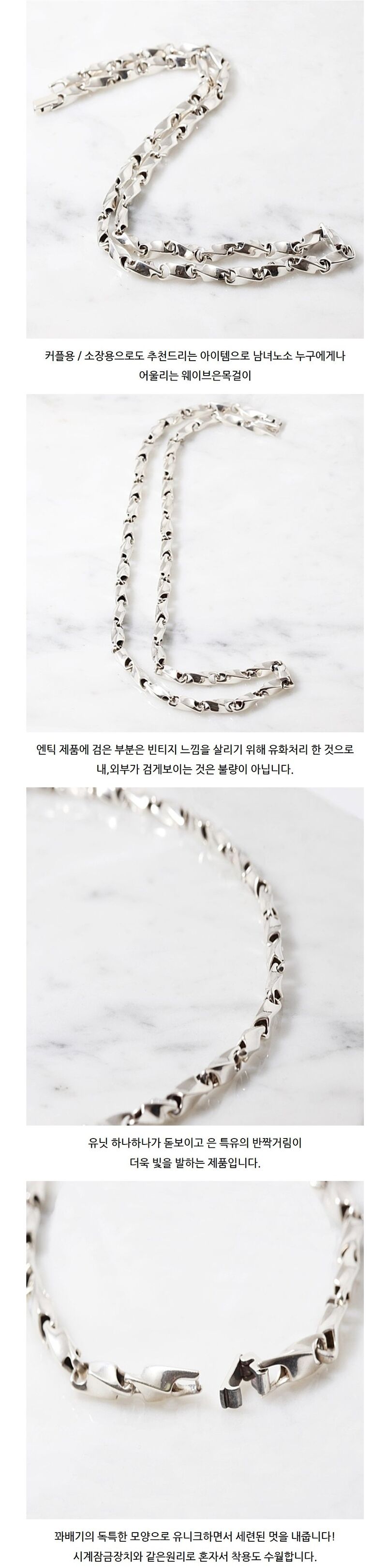 - 꽈배기 꼬임 로프 남자 여자 커플 순은목걸이 웨이브 세련되고 고급스러운 멋스러운 개성있는
