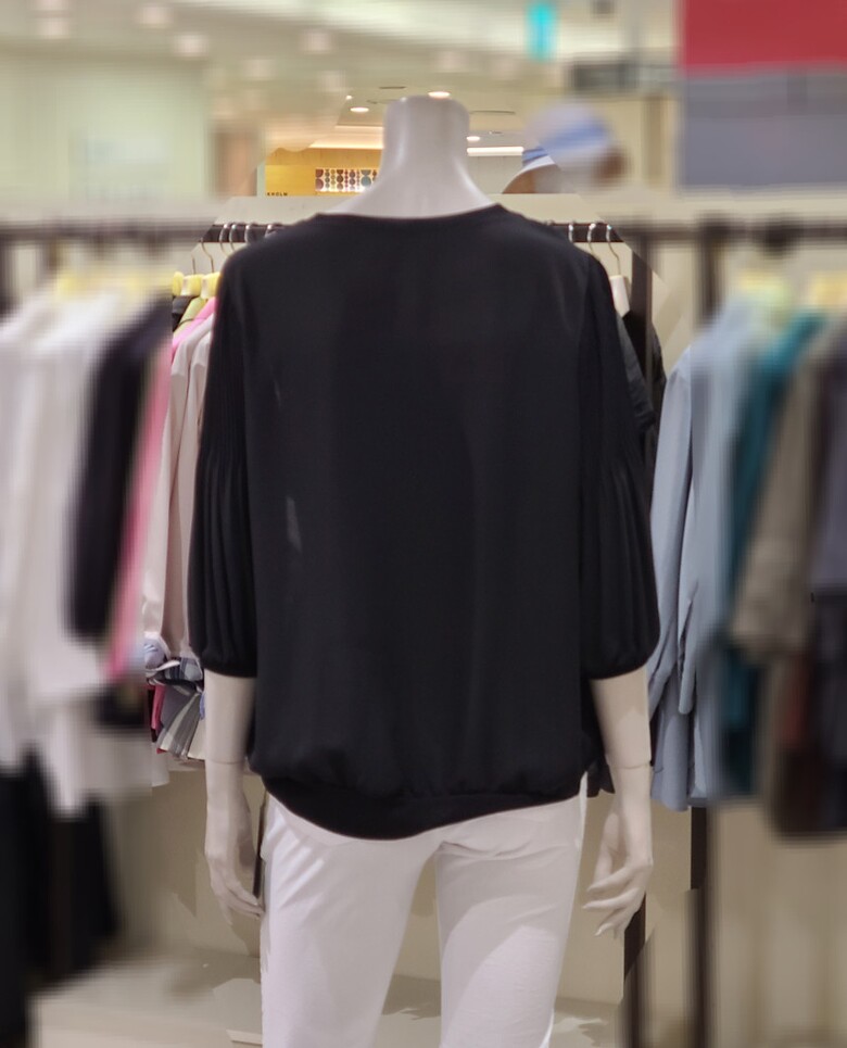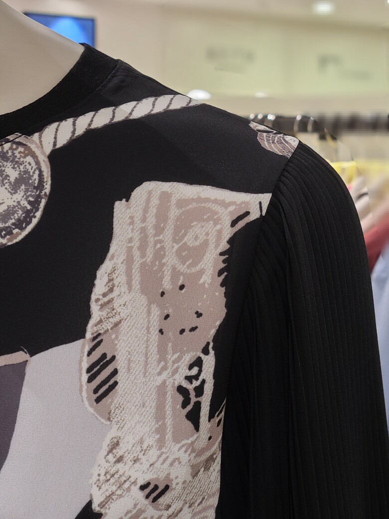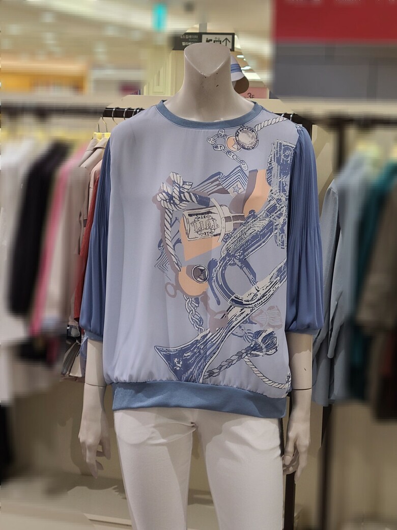 소고 플리츠 소매프린트 블라우스AJ1BA16
