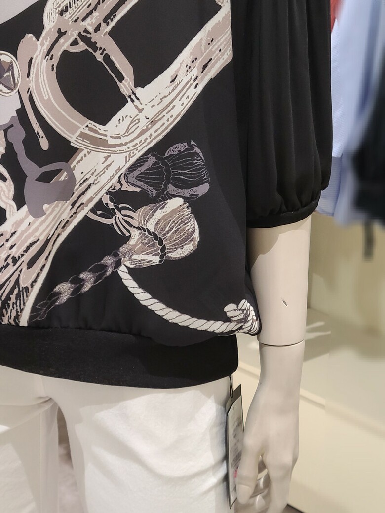 소매 플리츠 스타일에 프린트 블라우스입니다